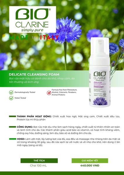 Bọt Rửa Mặt BIO CLARINE – Delicate Cleansing Froam (Bọt rửa mặt Hữu cơ cho da nhạy cảm 100ml)